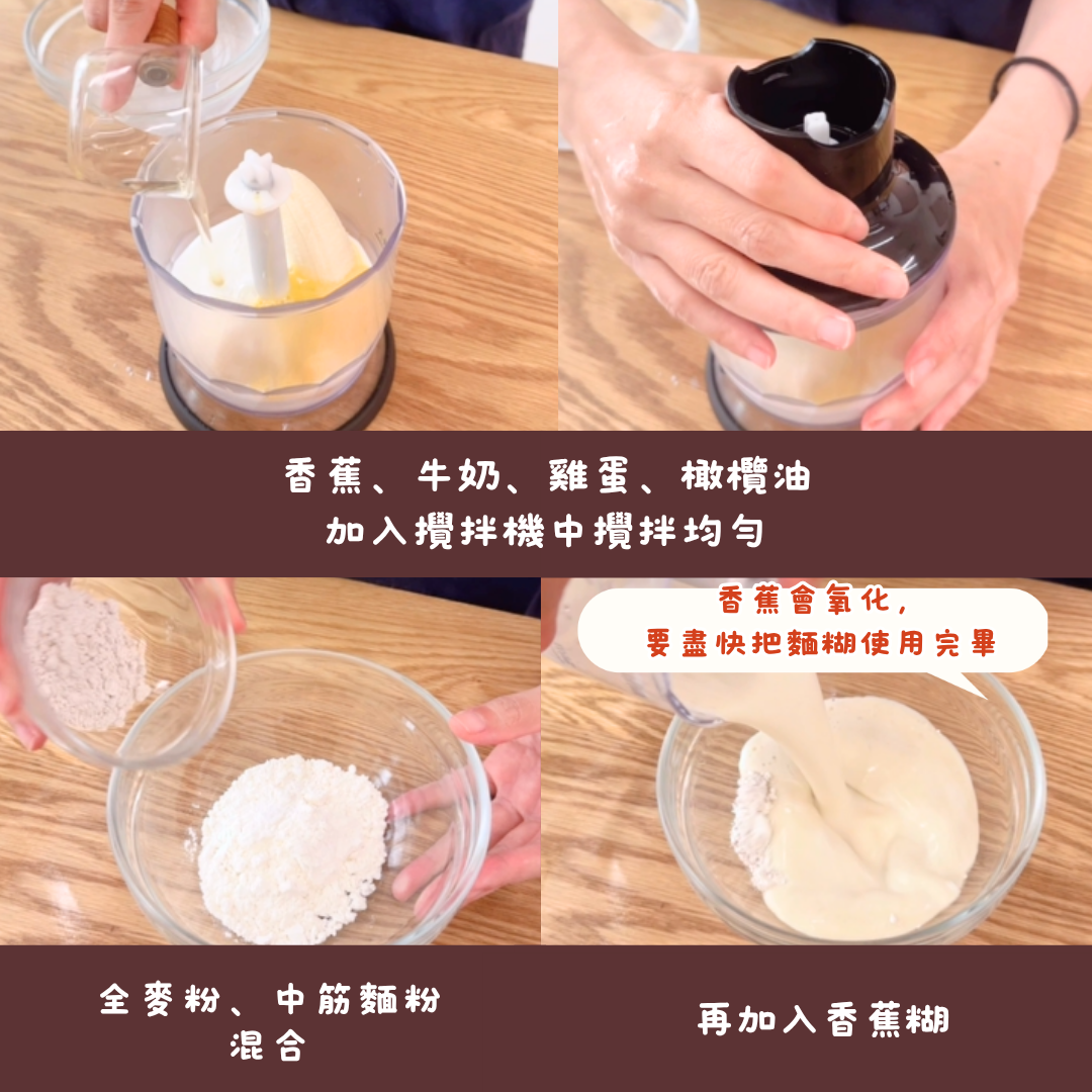 ✅香蕉會氧化,要盡快把麵糊使用完畢