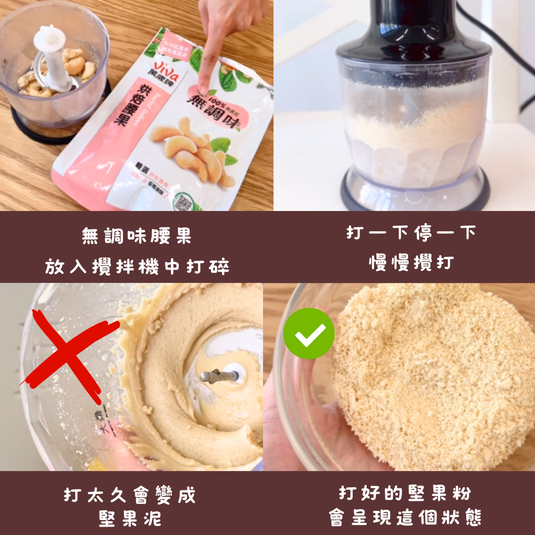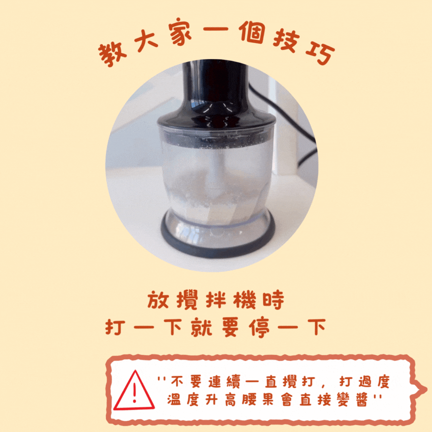 不要連續一直攪打,打過度溫度會升高,腰果會直接變醬