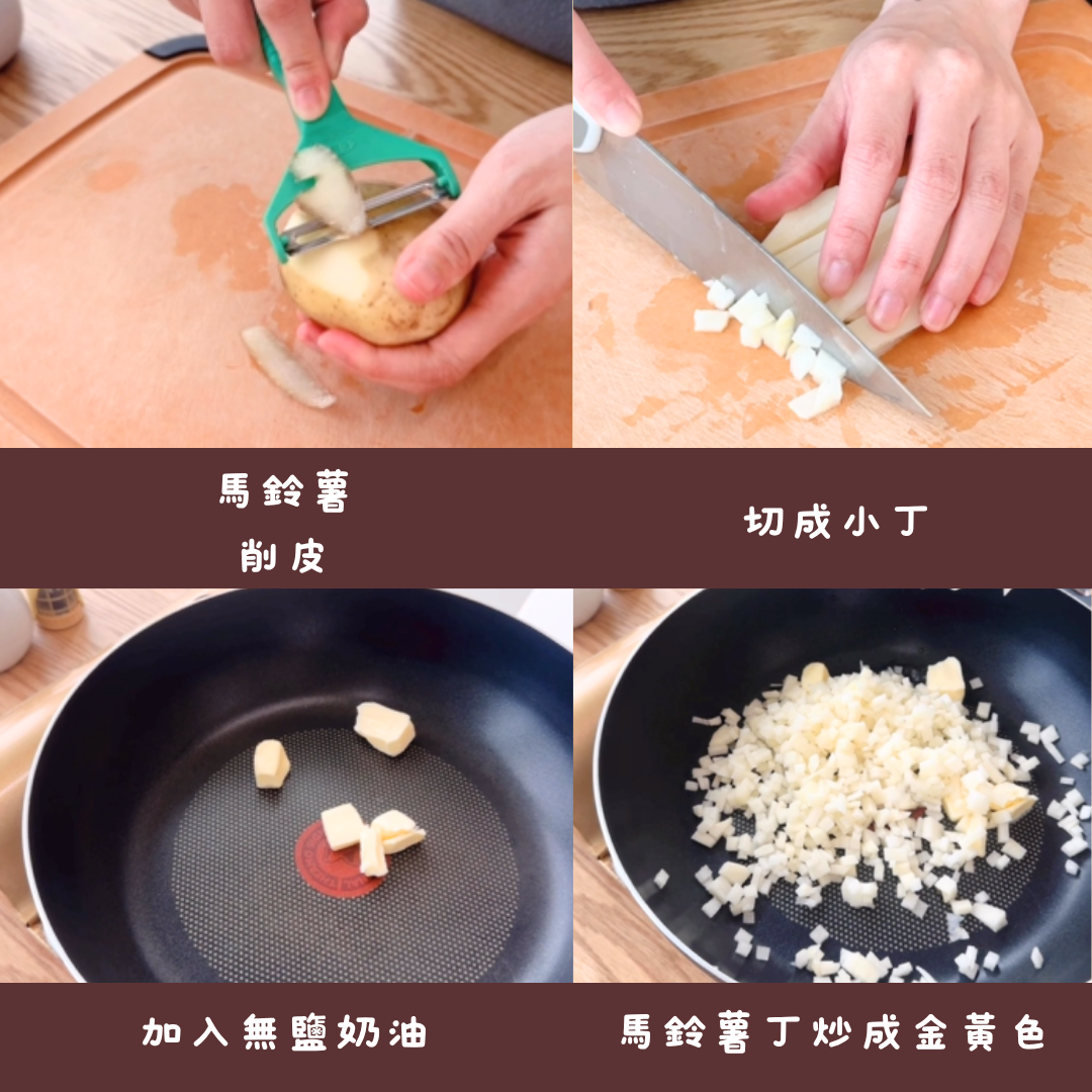 馬鈴薯要「完全炒熟」塑型時用力按壓