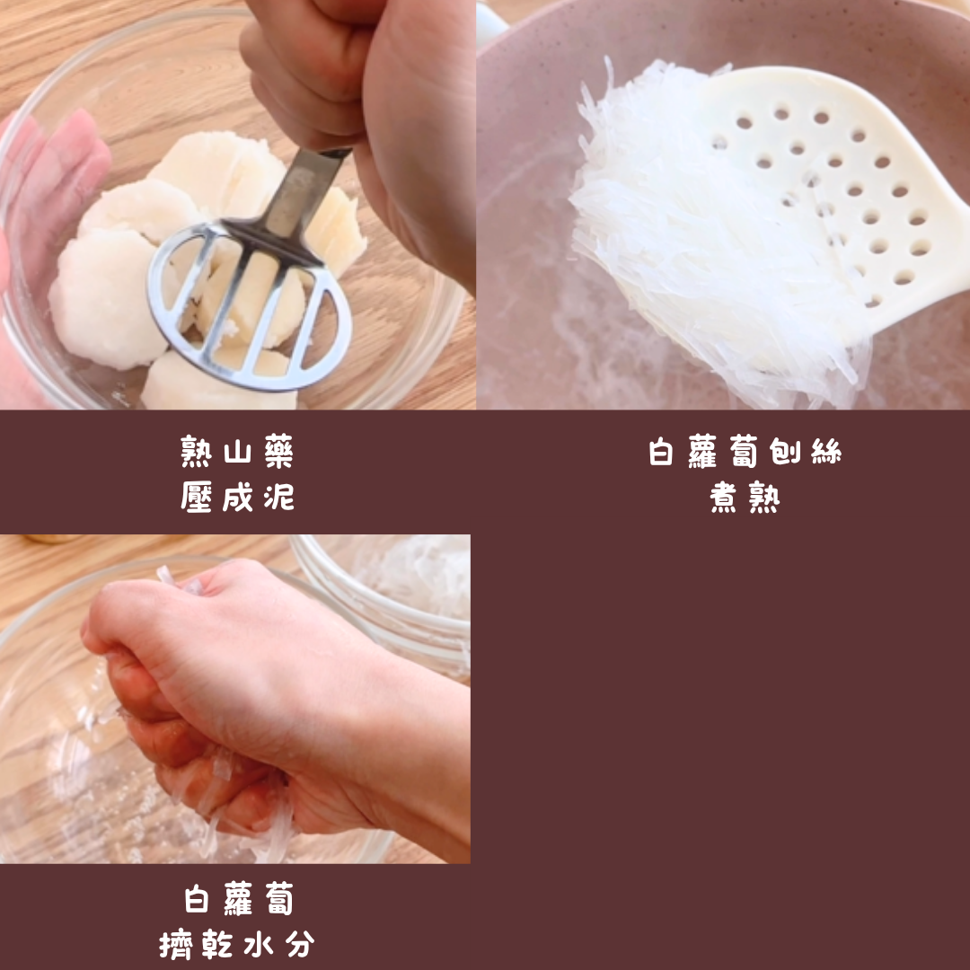 ✅山藥蒸熟後趁熱壓細碎,做出來的煎餅更細膩
