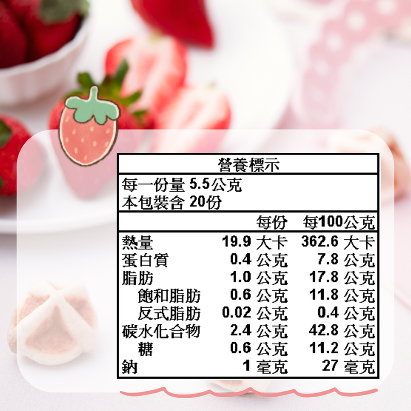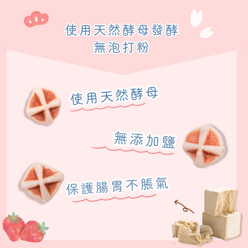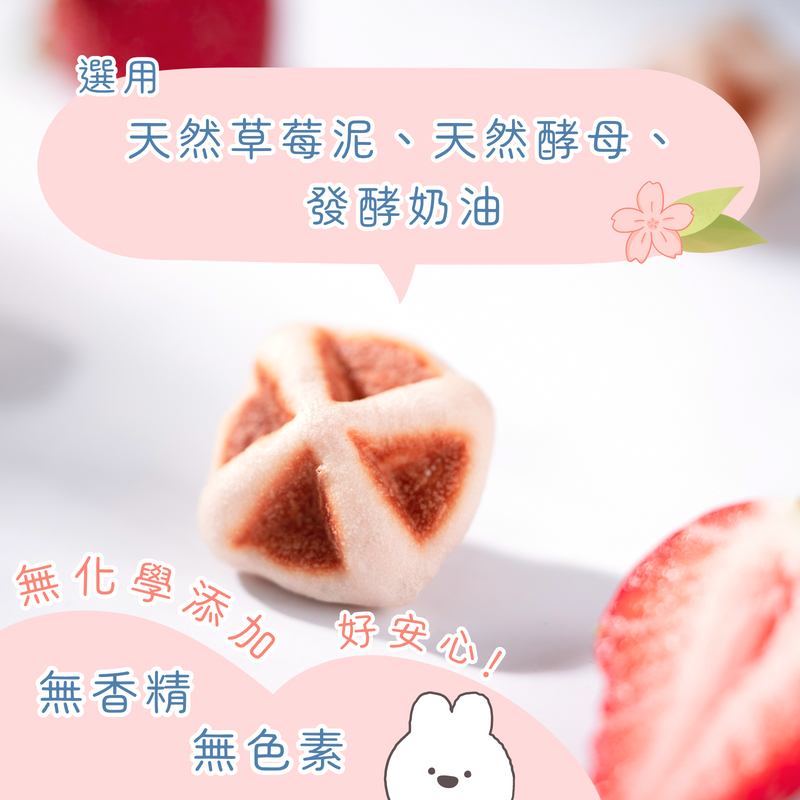 •成分►麵粉、草莓泥(草莓、糖)、雞蛋、無鹽奶油(乳脂、水、非乳脂固體、乳酸菌)、糖、鮮奶、酵母(天然酵母、水、卵磷脂)、葵花油