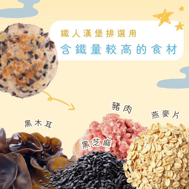 鐵人漢堡排選用含鐵食材 黑芝麻、黑木耳、豬肉、燕麥