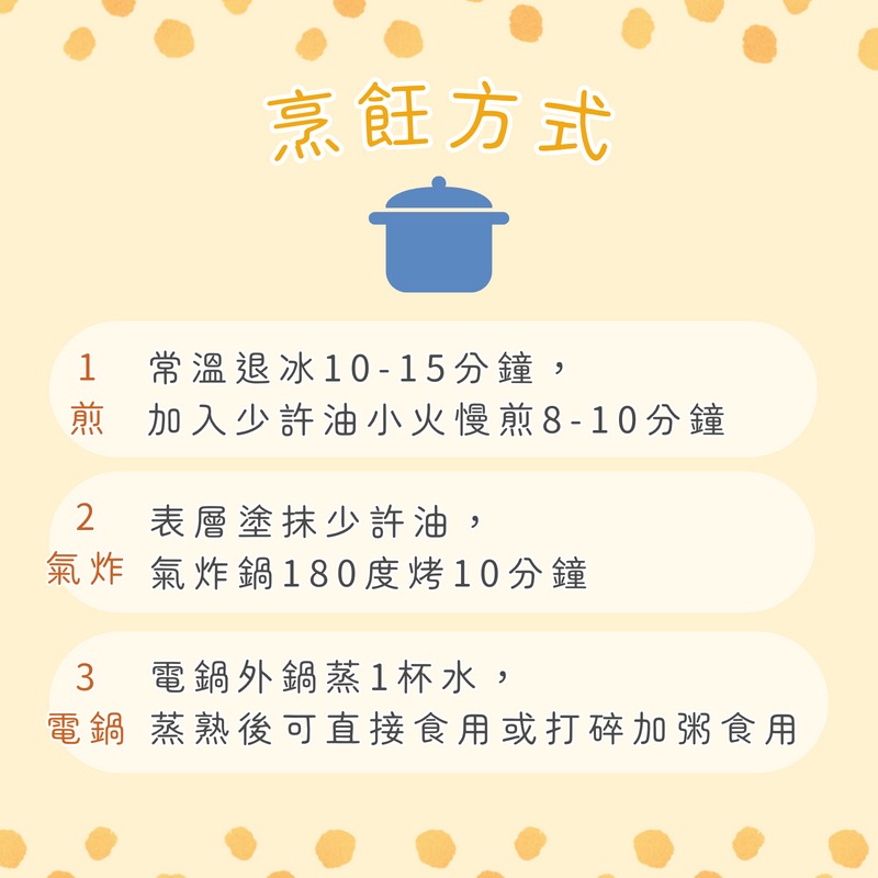煎-常溫退冰10-15分鐘,加入少許油小火慢煎8-10分鐘;