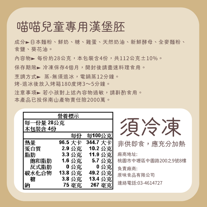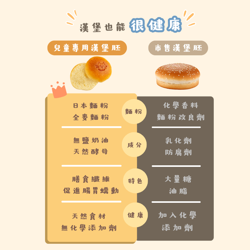 *本產品不含漢堡肉,只有漢堡麵包胚(寶寶漢堡肉排須另外加購)
