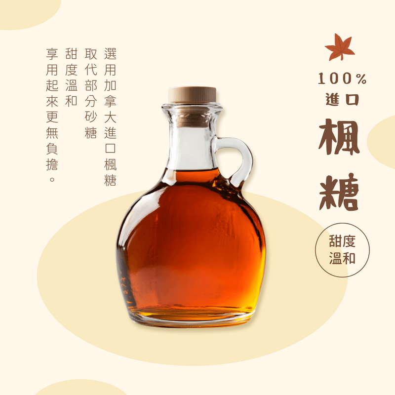 •成分►日本麵粉、鮮奶、無鹽奶油(乳脂、水、非乳脂固體、乳酸菌)、雞蛋、糖、100%純楓糖、牛奶鈣(天然牛奶萃取)、豆渣粉(非基因改造黃豆製)、酵母(天然酵母、水、卵磷脂)、過濾水、食鹽、葵花油