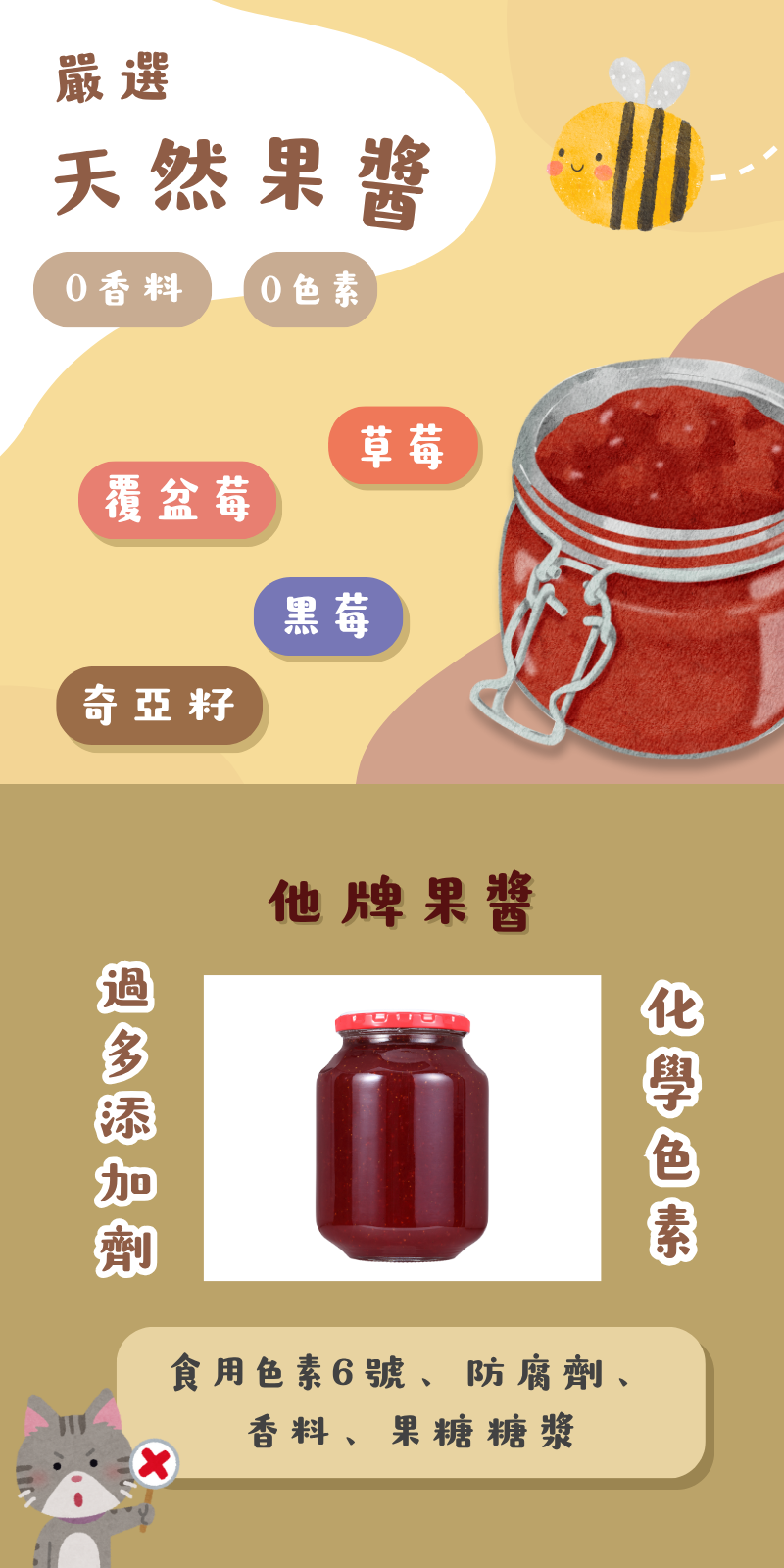 •成分►日本麵粉、鮮奶、無鹽奶油(乳脂、水、非乳脂固體、乳酸菌)、天然果醬(蔗糖、草莓、覆盆莓、黑苺、奇亞籽、檸檬汁)、雞蛋、糖、蔓越莓乾(蔓越莓、糖、葵花油)、100%純楓糖、牛奶鈣(天然牛奶萃取)、豆渣粉(非基因改造黃豆製)、酵母(天然酵母、水、卵磷脂)、食鹽、紅麴粉、葵花油