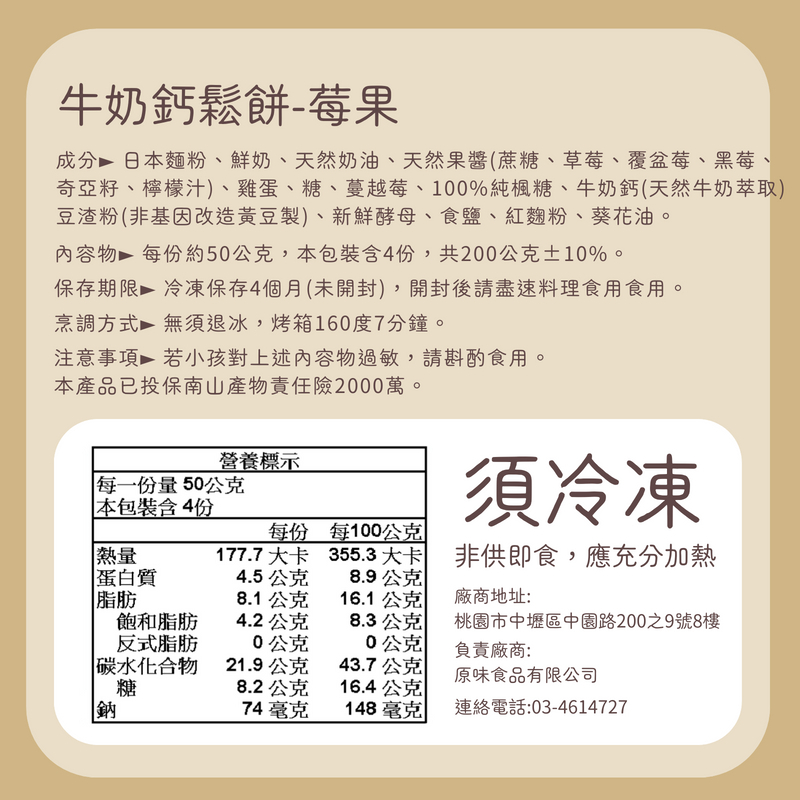 •產品名稱►兒童牛奶鈣鬆餅-莓果