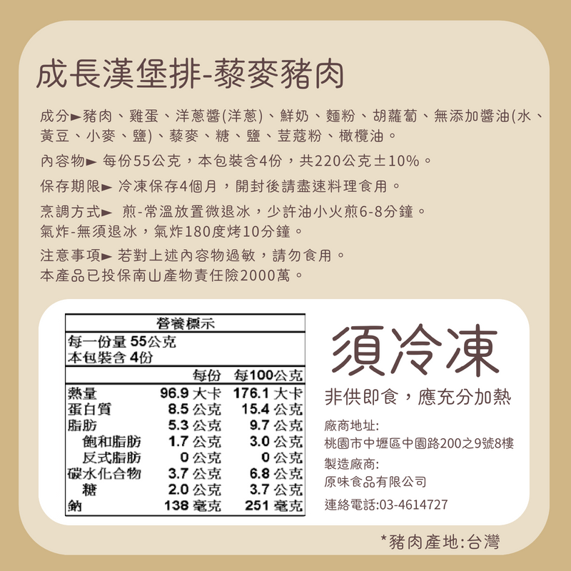 •產品名稱►成長漢堡排-藜麥豬肉
