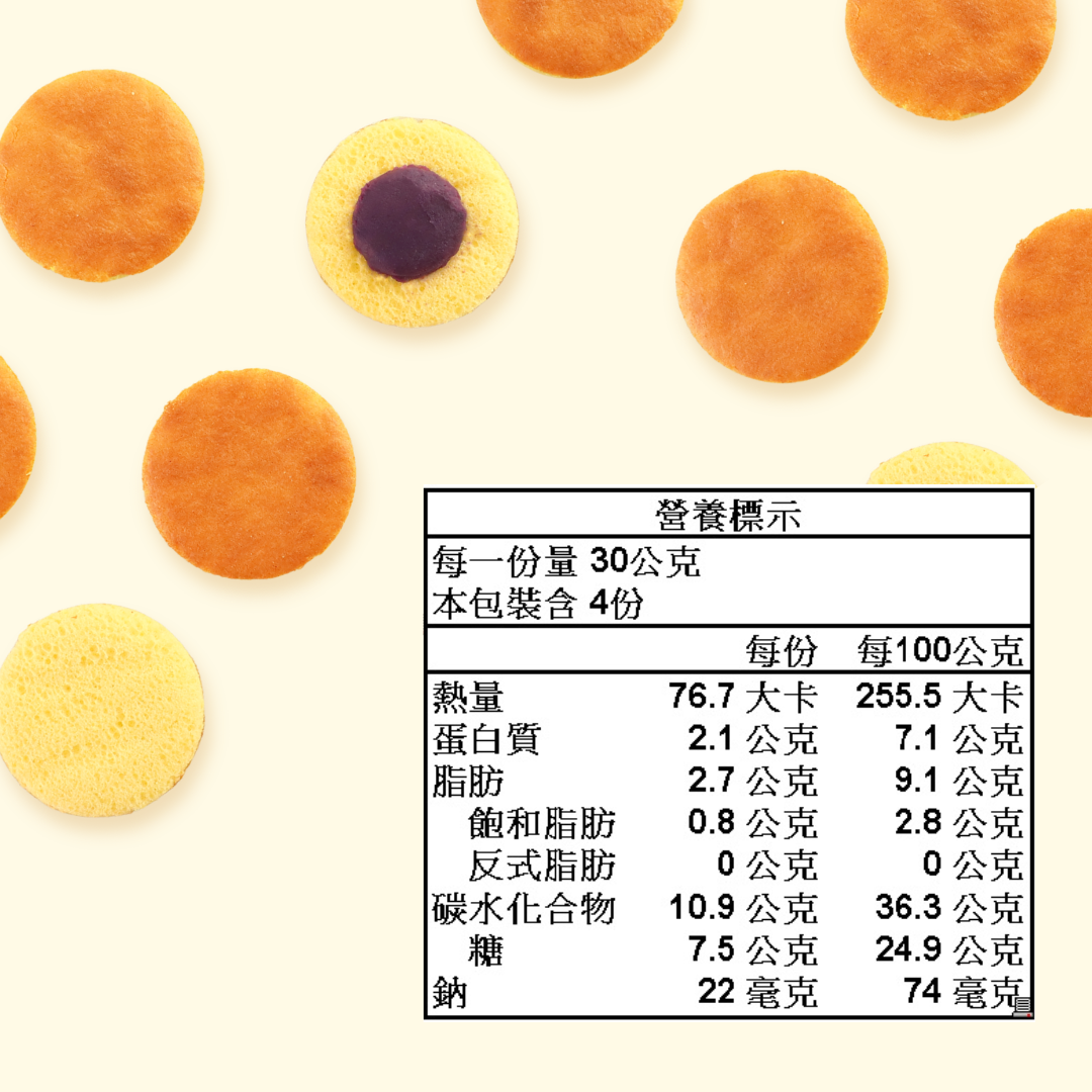 •成分►雞蛋、紫地瓜、糖、鮮奶、玉米粉、海藻糖