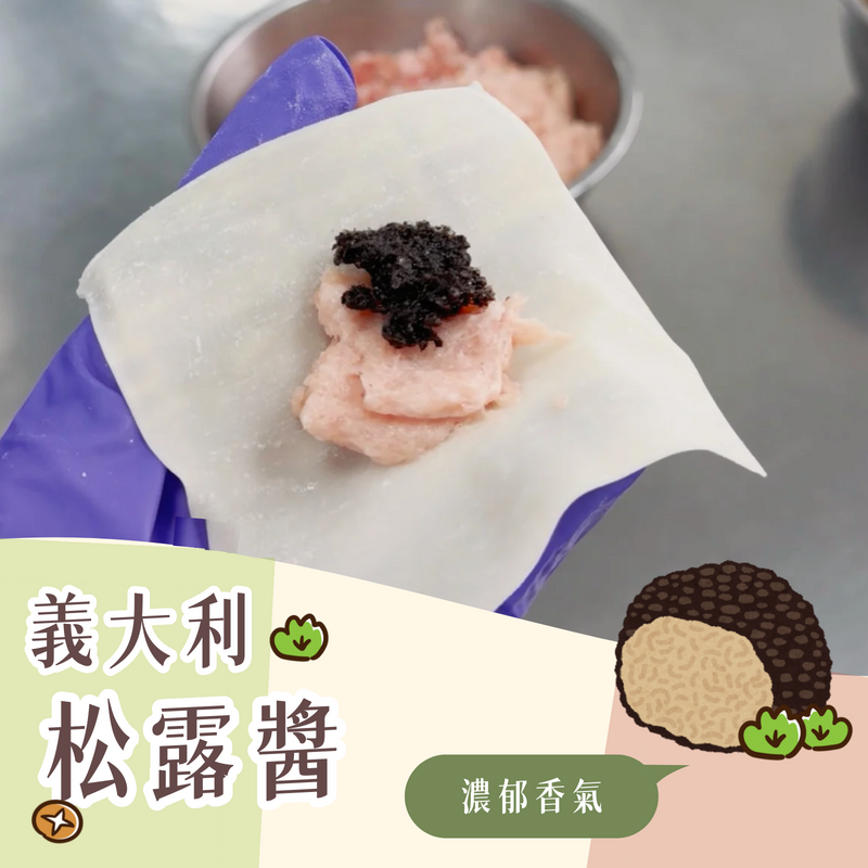 -餛飩:豬肉、餛飩皮(麵粉、水、雞蛋、太白粉、鹽、玉米粉)、水、松露醬【(洋蘑菇、葵花油、特級初榨橄欖油、夏松露、黑橄欖、鹽、墨魚汁、香料)】、雞蛋、鹽、糖、太白粉(樹薯澱粉)、酵母抽取物、白胡椒粉(白胡椒粒)。