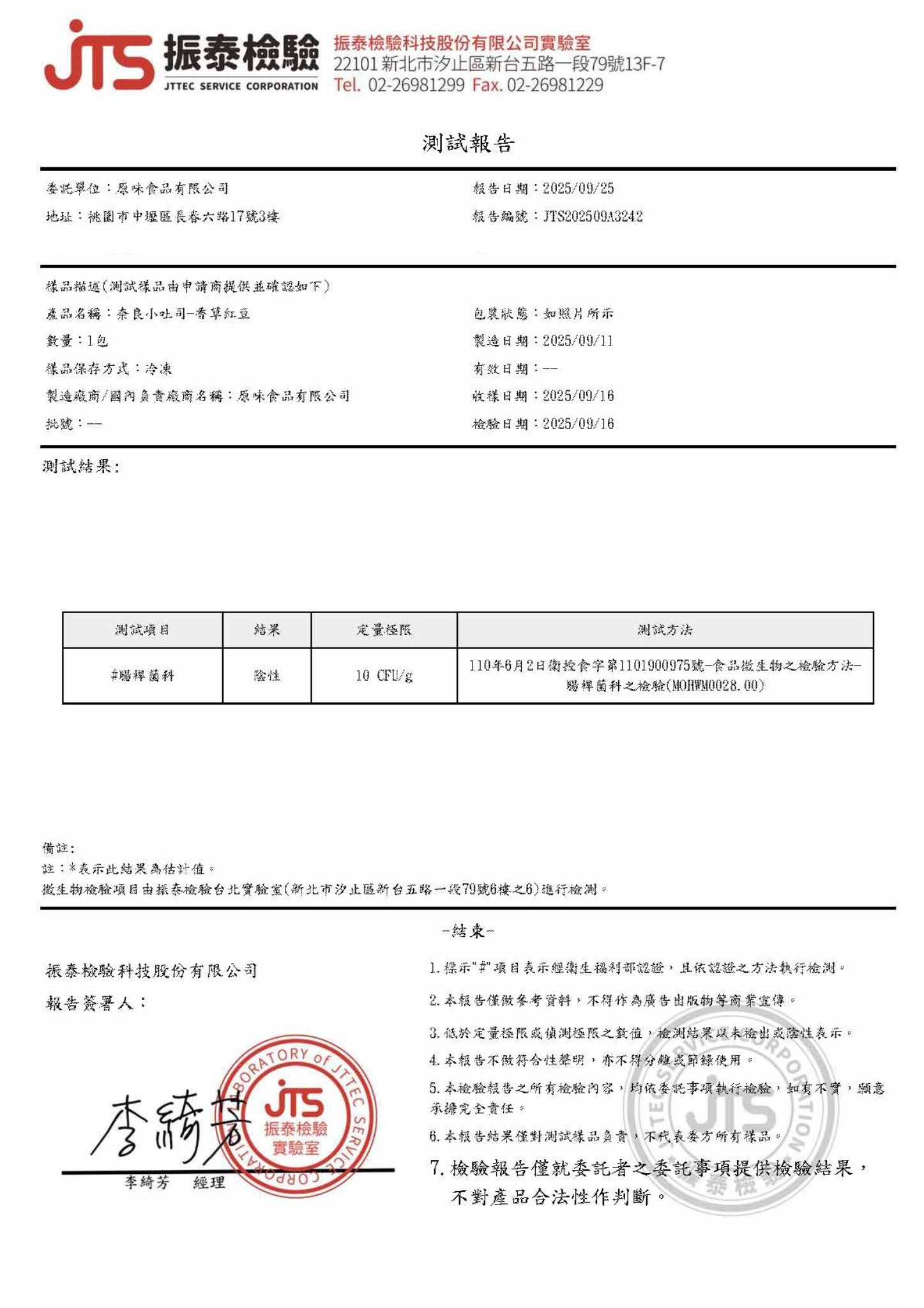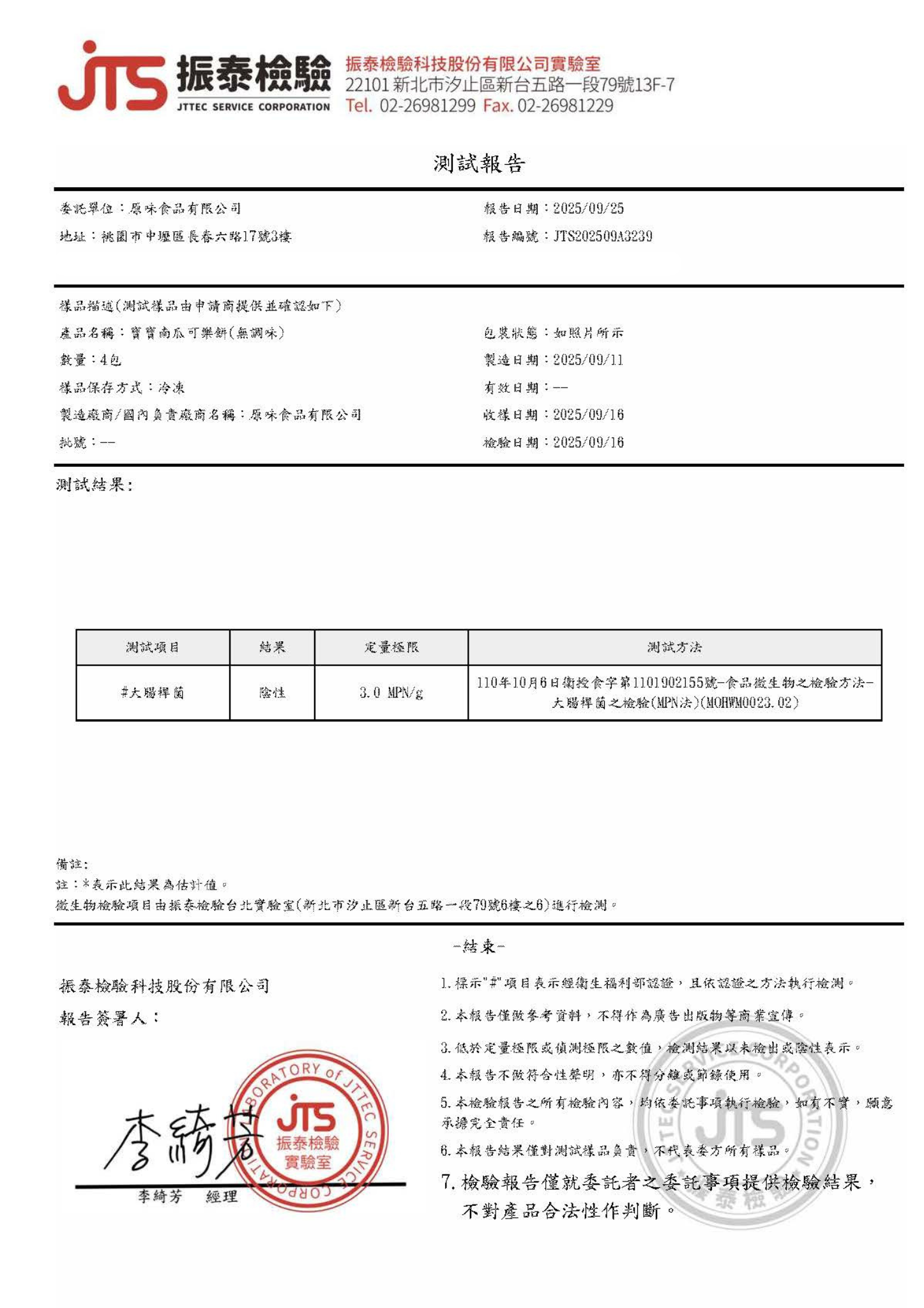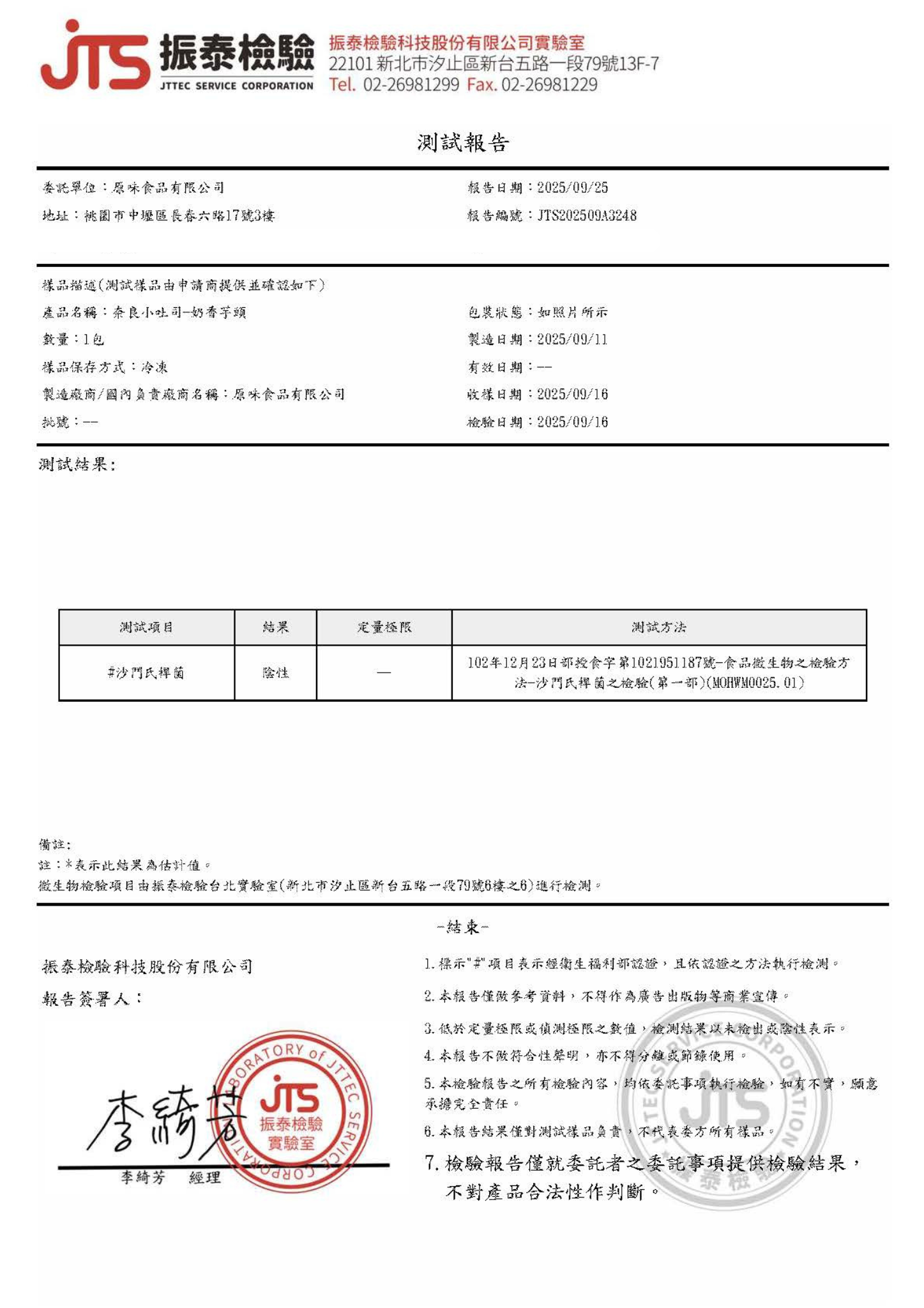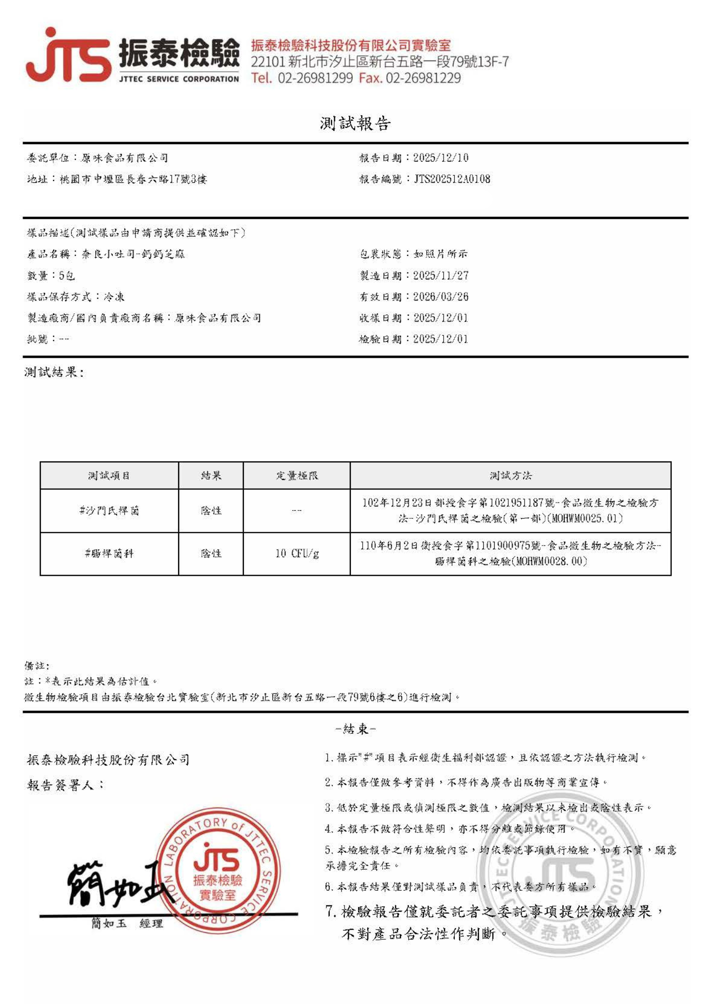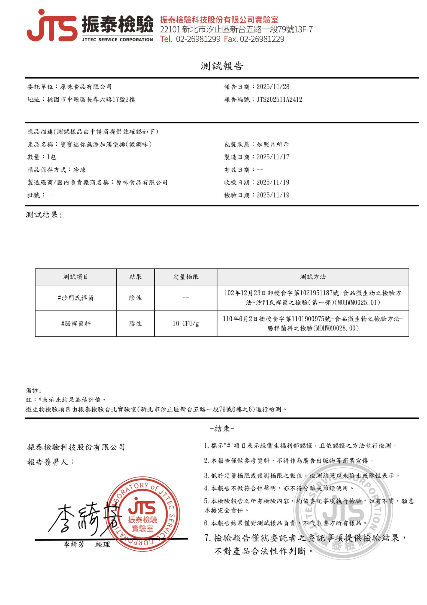 本公司商品將定期進行食品檢驗,讓每位媽媽買得放心,寶寶吃得健康。