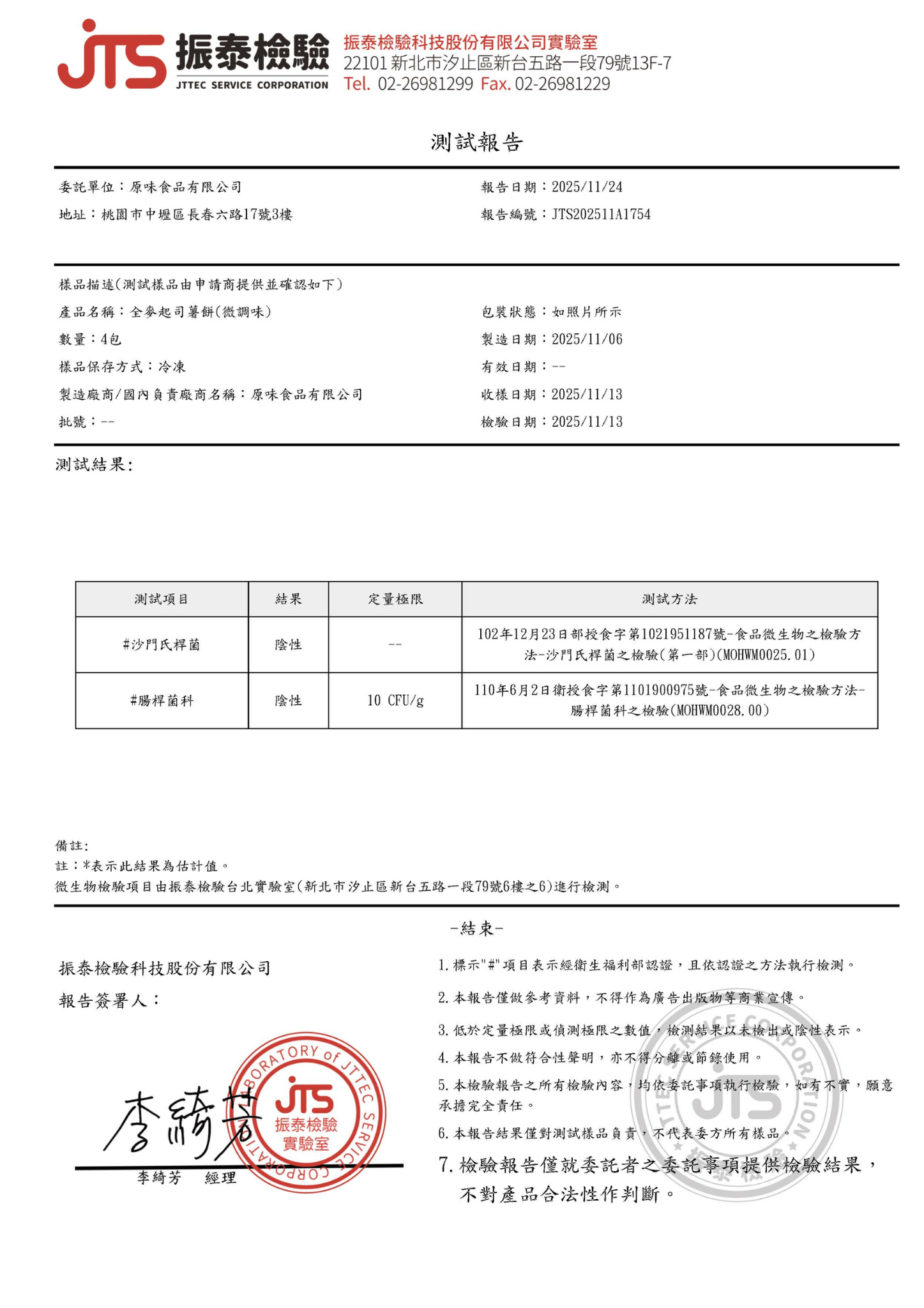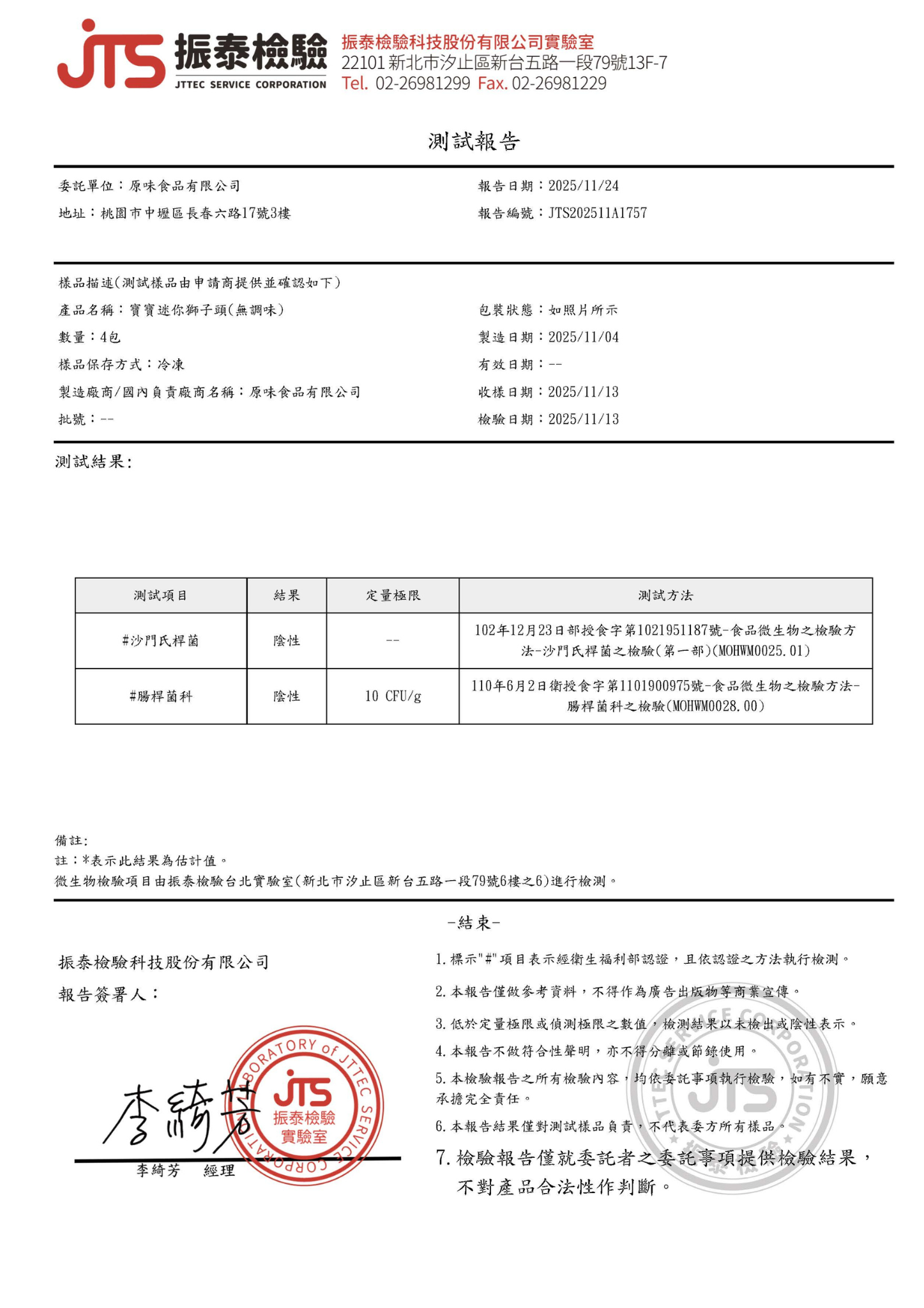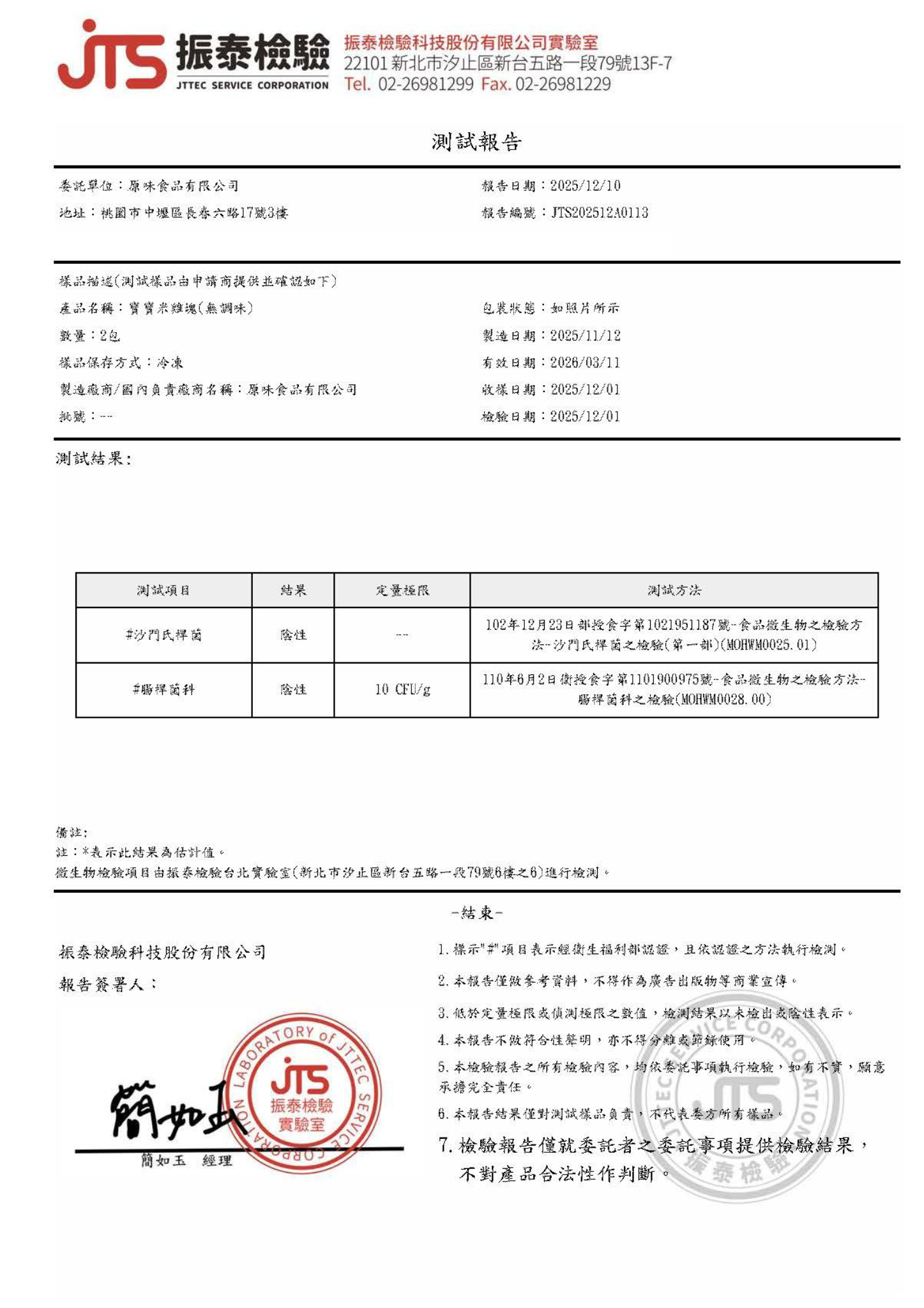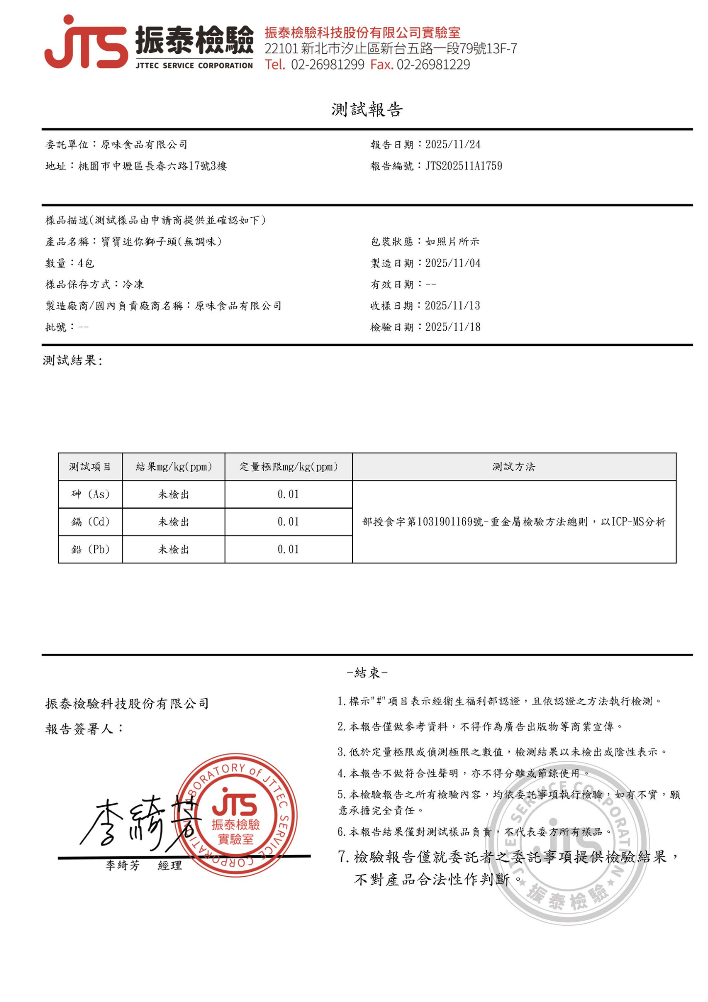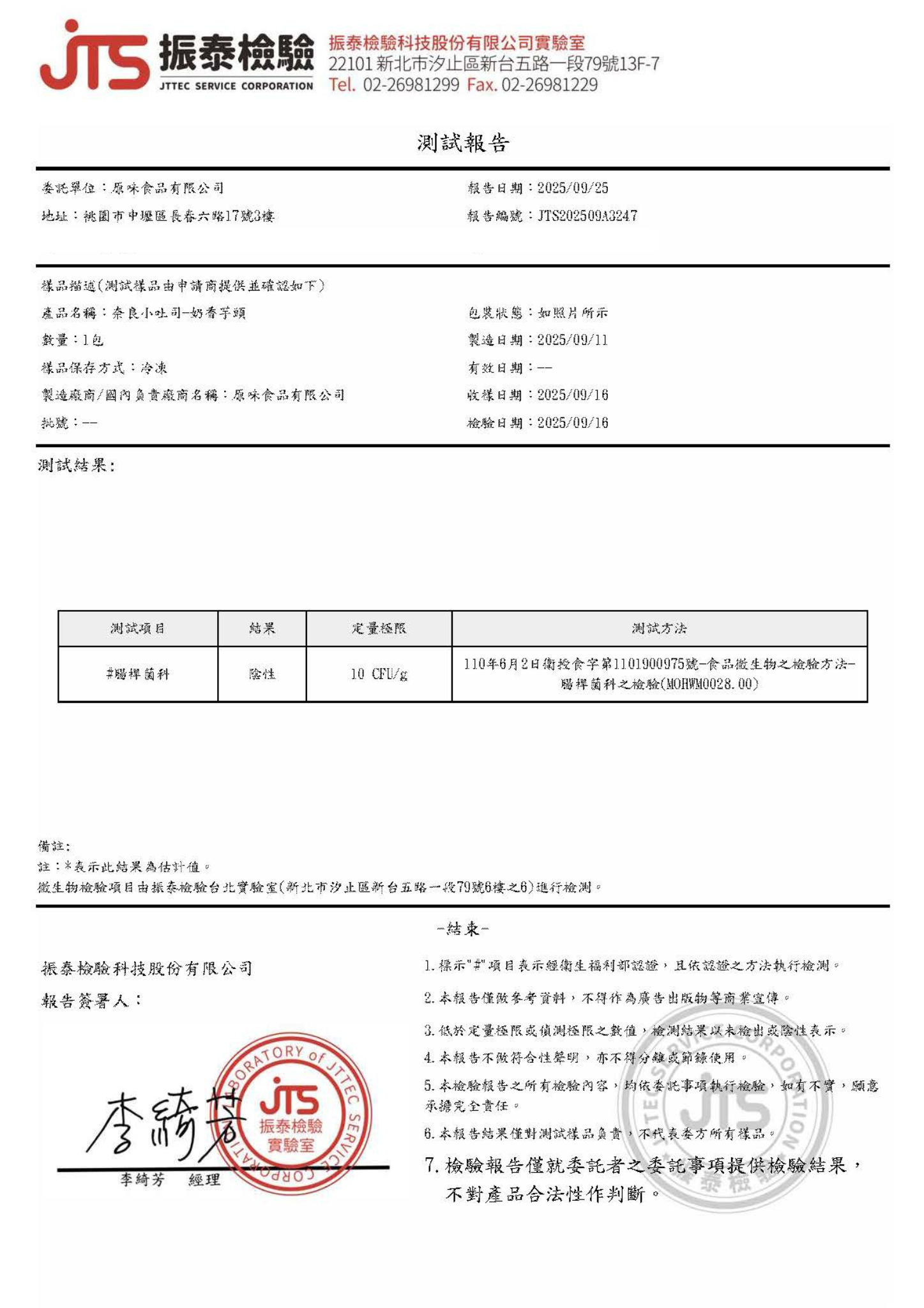 本公司商品將定期進行食品檢驗,讓每位媽媽買得放心,寶寶吃得健康。